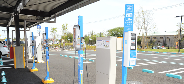 電気自動車(EV)・プラグインハイブリッド自動車(PHV)用充電器を設置し、有料充電サービス※を提供しています。これにより商業施設として利便性の向上を目指すとともに、お買物ついでに充電していただけるEV・PHVの利用スタイルの確立や環境配慮型の次世代自動車の普及促進による低炭素社会の実現に貢献しています。※この充電サービスは国内自動車メーカー4社が設立した合同会社日本充電サービスが発行する充電カードやクレジットに加えてnanacoカードで決済できる有料サービスです。電子マネーでの前払い制ですが、残時間も繰り越しして使用できるようになっています。