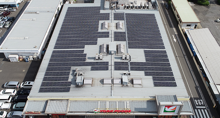 RE100とは、企業が事業活動で使用する電力を100%再生可能エネルギーで賄うことを目指す国際的なイニシアチブ。 イトーヨーカ堂では、オフサイトPPA方式※で太陽光発電所からの電力供給を受けることで13店舗が達成しています。