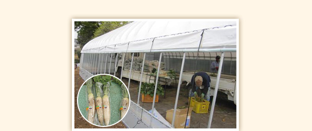 4/22(金)セブンファーム富里にて大根を初収穫。今年は天候に恵まれ昨年より2週間ほど早く収穫となりました。5月中旬頃まで1日約500本(トータル15000本)ほどを千葉県店舗中心に販売していきます。