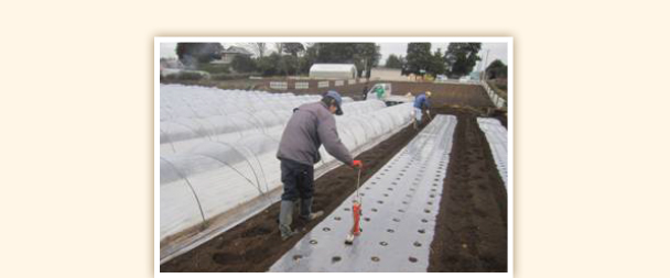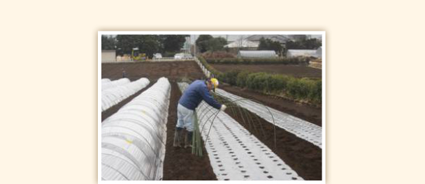 この時期の栽培はトンネル栽培。マルチシートを敷いてから播種を行います。