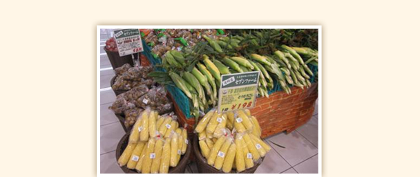 出荷の始まったとうもろこしを中心に協力生産者の皆様の商品計15アイテムをまとめて展開。千葉県店舗中心に12店舗で毎月1回フェアを実施しています。