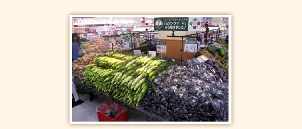 収穫の始まった茄子や今年新たに作付けした白いとうもろこしホワイトショコラなどの販売を実施。