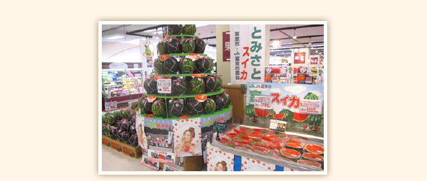 セブンファーム商品と合わせて地元富里すいかフェアも実施。JA富里市の皆様にも応援販売を頂きました。