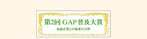GAPが新しい農業の姿にも適用できることを証明した事例として、生産側がGAPを導入して農場管理を改善し、それを小売・流通側がしっかり評価し、生販一体となって安全な農産物の生産・流通に取り組んでいる点を評価いただき「GAP普及大賞」を受賞しました。