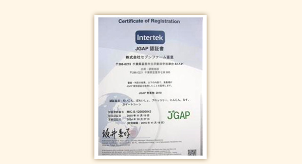 セブンファーム富里では2009年から農産物の安全性確保、農場の適正な経営などを目指し「JGAP認証」