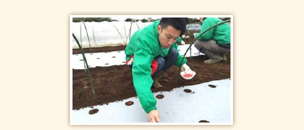 農産物の育成を 播種~収穫~商品化~出荷~販売まで体験実習し、農業の大変さを知ることで商品の知識や大切さを学ぶ。