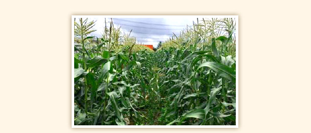 前回4月の研修時に植えたとうもろこし。例年になく、育成状況は良好。