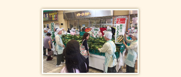6/30(金)午後 青果部入社2年目社員研修 午後は自分たちで種まき~収穫を行ったとうもろこしをイトーヨーカ堂店舗で販売。津田沼店の店頭で約3時間で1000本を販売しました。