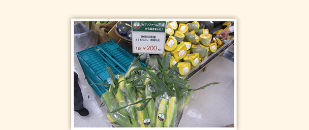 とうもろこしは当日の朝採りを販売。規格外品も販売しました。