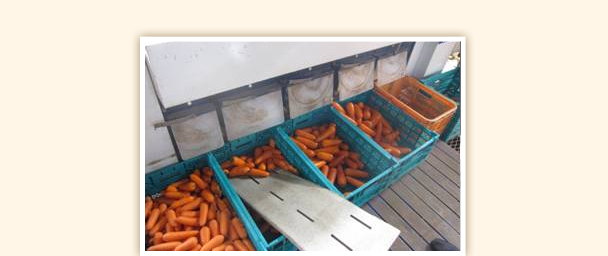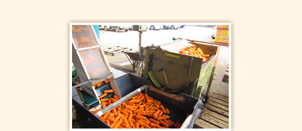 にんじん専用収穫機で抜いたあとにんじんの選果機で洗います。