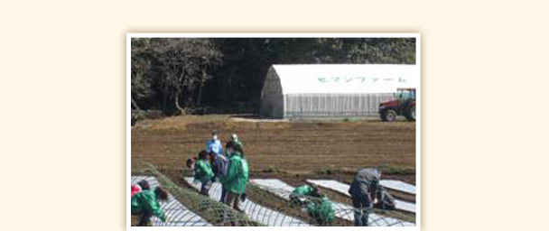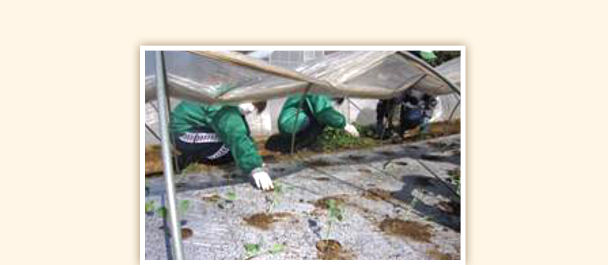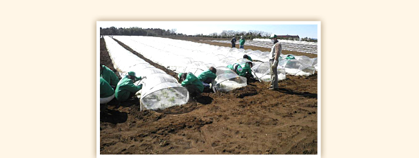 ブロッコリーの定植1ヶ月ほど他の場所で育苗した苗を定植。 産地リレーに加え、トンネル栽培と露地栽培の併用で 出荷時期をずらしていることを確認。