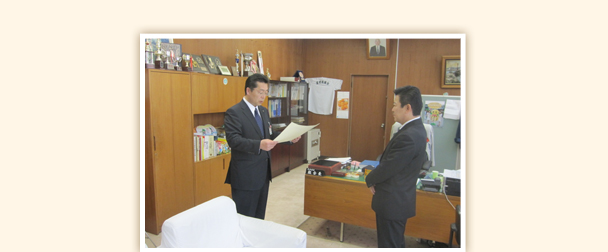 富里市農業協同組合根本実組合長様より表彰状を受けるセブンファーム富里代表取締役。今後も地元農業の発展に貢献していきます。