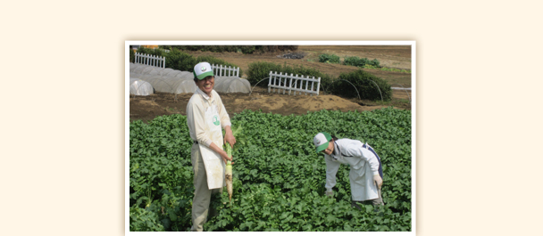 富里では大根の収穫も始まりました。5月下旬頃まで千葉県店舗中心に販売を行います。写真はセブンファーム富里の取締役でもある津田さんご夫妻です。