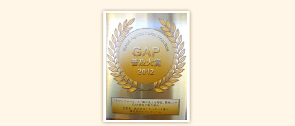 セブンファームの安全な農業への取り組みを評価いただき、2012年にはGAP普及大賞を受賞しました。