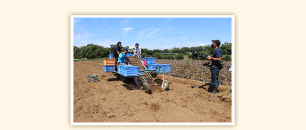 セブンファーム富里のプロモーション動画を撮影しました。天候にも恵まれ、じゃがいもの収穫の様子を皆様にお伝えできるよう、汗だくになりながら撮影しました。