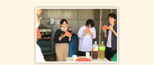 セブンファーム富里 津田社長より、「本来ならば種まきから収穫と2回研修を行ってきました。今年はコロナ禍で種まき研修はできませんでしたが、収穫だけでも暑い中大変だと思います。この体験を販売にも活かしてください。」とのお言葉を頂きました。