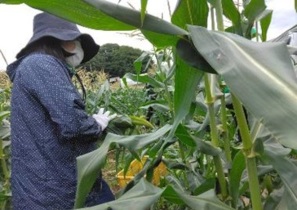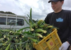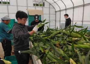 白いとうもろこし(ホワイトショコラ)の収穫体験。