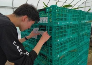出荷用コンテナに詰めて、いざ四街道店へ!