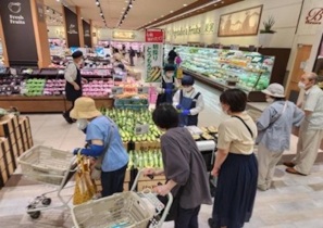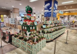 売場作りの一環として、週末に実施する「富里すいかフェア」イベントの売場も作ってもらいました。