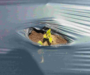 マルチから顔を出したジャガイモの芽は黄色くて少し頼りないですが、