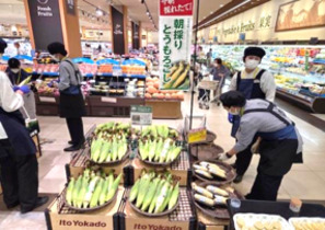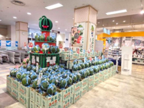 週末に催事場で開催される「富里すいかフェア」の売り場を作ってもらい、 しっかりお客様にPRしていきます。 今回の経験を活かし、これからもお客様に喜んでいただける販売を目指してください!