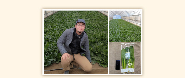 理論とデータに基づいたオリジナル肥料を使って、 ロメインレタスや葉物野菜を中心に栽培しています。