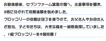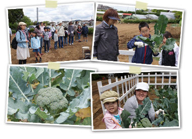 ワークショップでまいたブロッコリーの種がその後、どんな風に育ってきたのでしょうか。実際の畑の様子を見ていただきました。4月の悪天候で生育が遅かったそうですが、ゴールデンウイーク中の暖かさで、一気に大きくなりました。