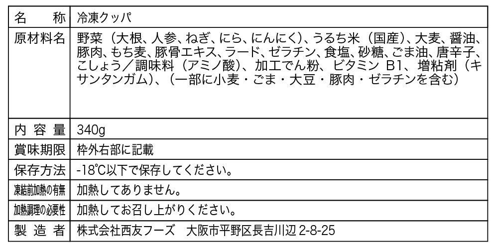 栄養成分表示 1食(340g)あたり