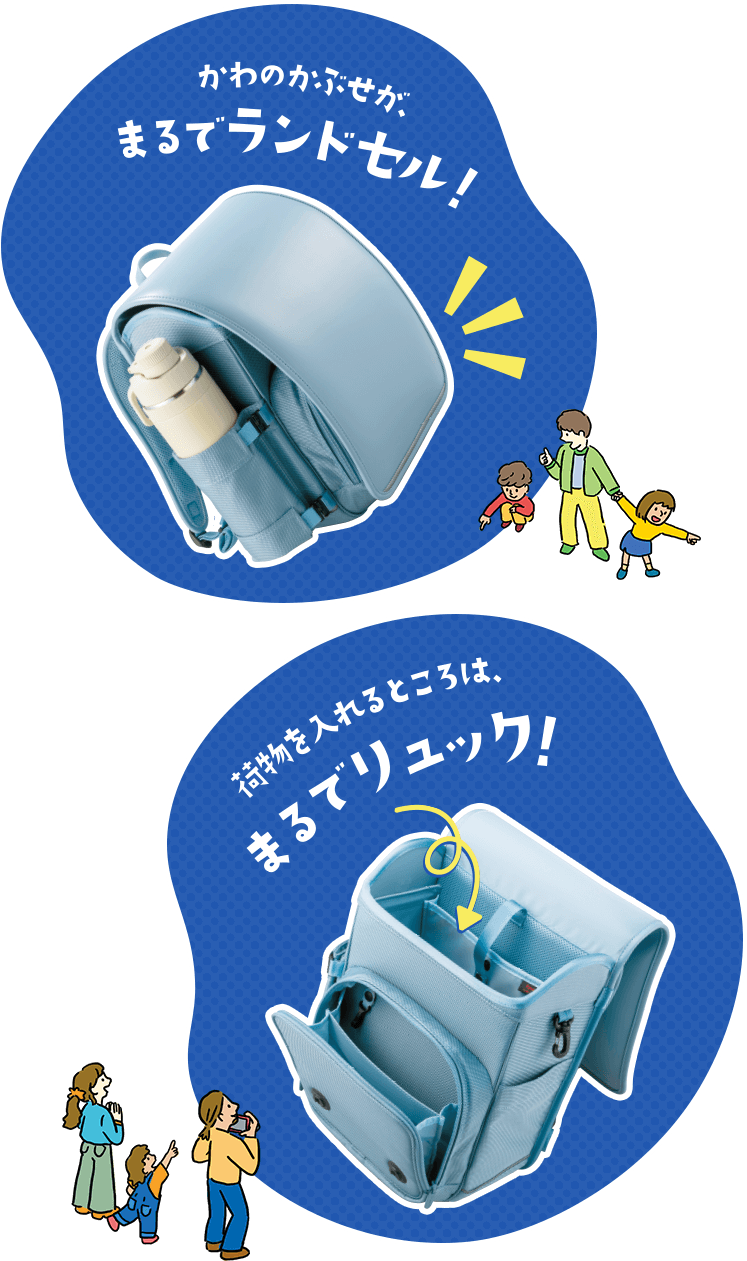 体に当たる部分の背中と肩は水滴が染み込まない撥水加工のメッシュ生地を使用。雨の日も汗をかく日も、どちらも快適に通学できます。